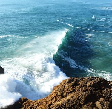 Convergência de Ondas: Quando as ondas geradas pelo vento e pelas correntes atingem o desnível do cânion, elas ganham altura e força, resultando nas gigantescas paredes de água vistas na Praia do Norte.